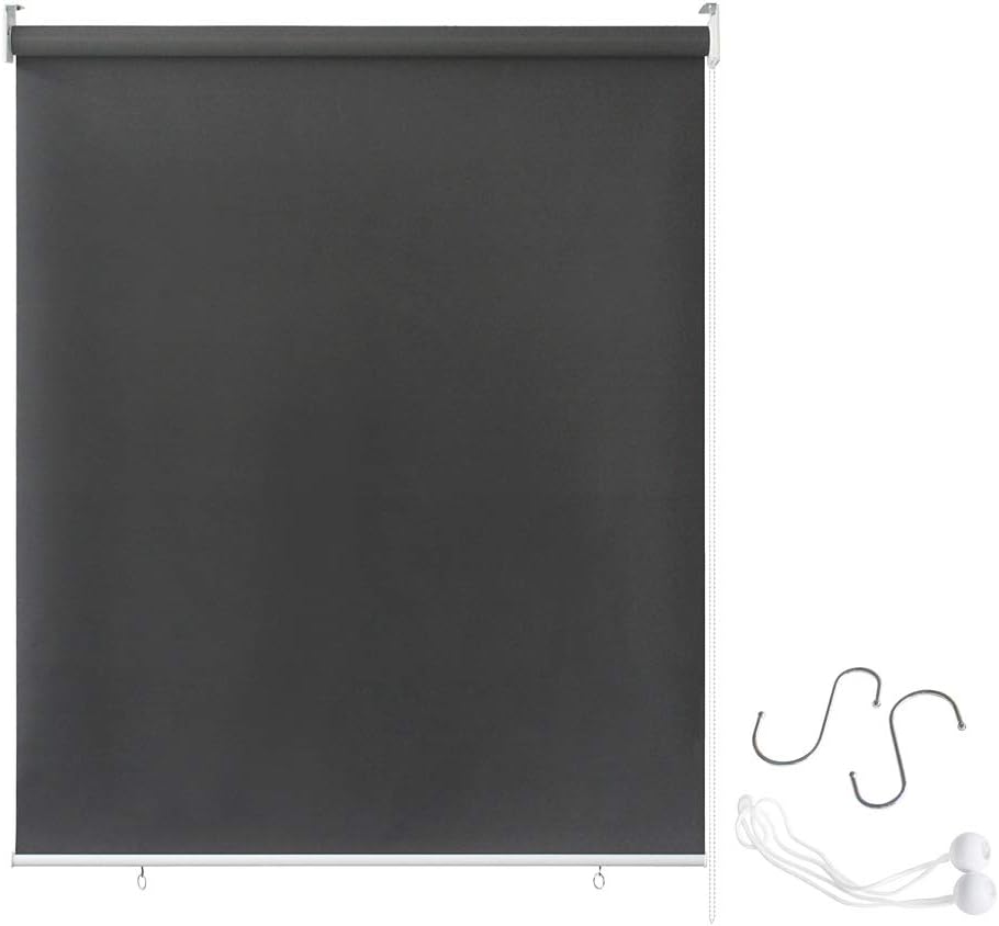 Lauko žaliuzės – dydis: 100 x 140 cm, medžiaga: nepralaidus audinys ir geležis, spalva: antracito. Pristatymo komplekte yra montavimo medžiagos.