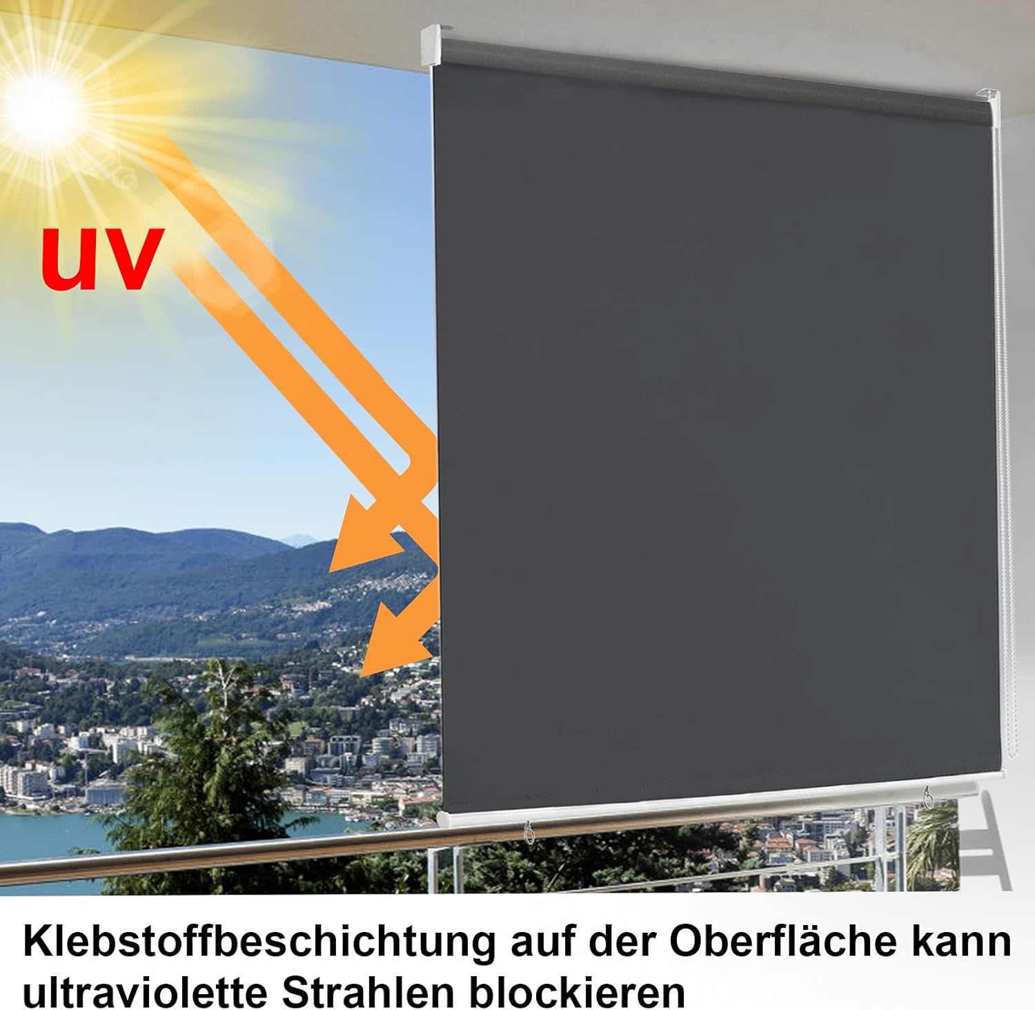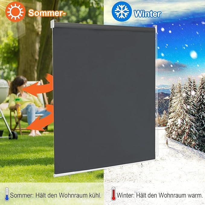 Lengvas naudojimas: Lauko žaliuzę tereikia rankiniu būdu ištraukti iki norimo ilgio ir užfiksuoti. Žaliuzės gali būti ištraukiamos iki 140 cm ir suteikia apsaugą nuo saulės, vėjo bei užtikrina privatumą.