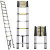 Teleskopinės kopėčios, turinčios tvirtą aliuminio konstrukciją, pramoninio aukščio fiksavimo skląsčius ir kietas gumines kojeles.