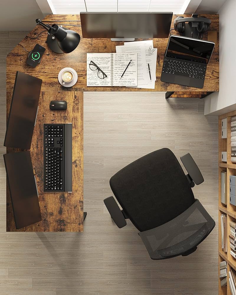 VASAGLE L formos kompiuterio/kampinis stalas su 2 lentynomis 138×138