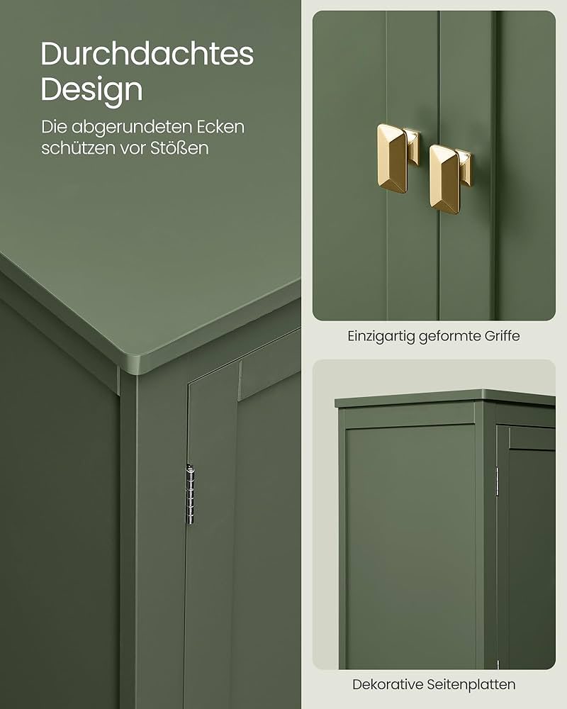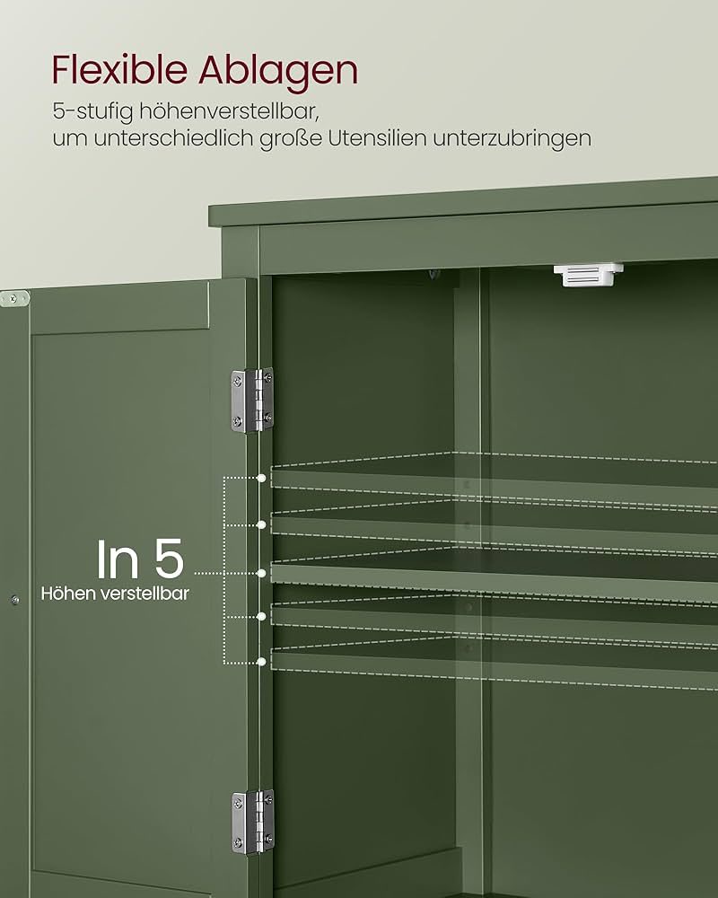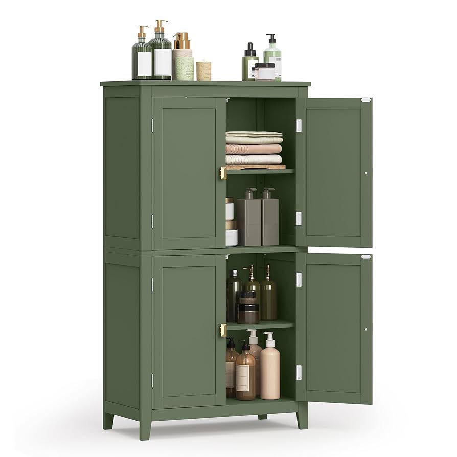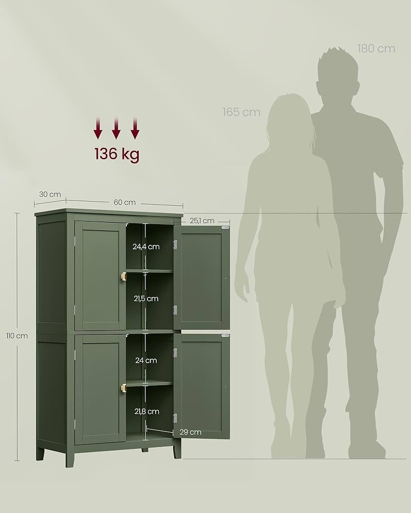 VASAGLE vonios spintelė / virtuvės spintelė su 4 durelėmis, reguliuojamomis lentynomis, 30 × 60 × 110 cm, miško žalios spalvos.